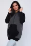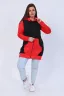 Женская комбинированная туника прямого силуэта на молнии, с капюшоном на шнуровке через люверсы. Длинный рукав на манжете. Карман "кенгуру". Теплая и удобная. Рост модели на фото 165см, размер 48