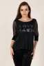 Стильная, лёгкая и приятная на ощупь туника состоит из двух частей: верхней - из сетки с рукавом "летучая мышь" длиной 3/4 и нижней - из вискозы с фольгированным принтом, соединяющихся между собой по горловине. Она является одной из наиболее популярных моделей, которая отличается высокой стойкостью к износу, воздухопроницаемостью, гигроскопичностью и обеспечивает максимальный комфорт в жаркую погоду.