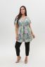 Туника женская со спущенным плечом выполнена из вискозы красивой нежной расцветки. Горловина с V-образным вырезом обработана планкой, низ изделия немного расклешен. Ткань при стирке не линяет, не дает усадки, сохраняет форму. Туника подойдет для прогулок, дома и отдыха.