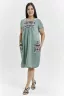 Стильная женская туника из кулирки. Горловина с завязками, короткие рукава, узорчатые вставки, карманы и окантовка, общая длина туники чуть выше коленей.