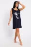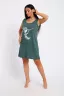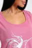 Туника домашняя из однотонной меланжированной кулирки, на передней части изделия расположен принт, горловина круглая, длина туники до колена.